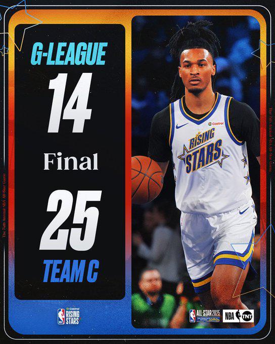 穆林请求暂停,戴维斯、邓恩被换上,卡斯尔篮下打进,邓恩三分命中,克里斯队以13-12反超。G联盟队继续打铁,卡斯尔补篮得手,麦克格文斯转身跳投命中,卡斯尔突破制造犯规,两罚全中,17-14领先。G联盟队进攻继续哑火,连续投篮打铁,克内克特找到准星,先是突破拉杆打进,接着左翼命中三分,克里斯队以22-14领先。G联盟队暂停后麦克格文斯失误,乔治左翼命中三分,25-14,克里斯队获胜夺取冠军。克里斯队将在周一的全明星赛中登场,他们将与拥有詹杜库的沙克队交锋。